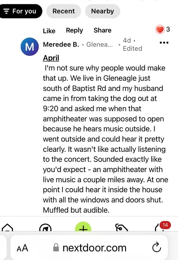 “After monitoring sound all weekend, we were 100% in line with our commitments made in the PUD with the City of Colorado Springs. All our mitigation tactics are operating and working properly. We will report this information to the city as they have requested, and we committed to in our PUD.”