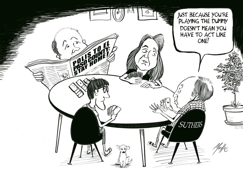 As a 17-year-old senior at Wm. J. Palmer High School, Kirk sold one of the first cartoons he ever drew to SKI Magazine. Even though he tried, and tried and tried again, he never sold another cartoon to any magazine again—ever! What’s worse: the ski cartoon was never published. He tried his hand at editorial cartooning by securing an internship at the Boulder Daily Camera. His editorial cartoons have appeared in the Lamar Tri-State Daily News, the Pikes Peak Journal, the Cheyenne Edition, the Colorado Springs Sun and the Colorado Springs Independent. Kirk submitted over a dozen concepts for comic strips. This involved drawing 24 to 42 daily and Sunday comic strips and mailing them off to newspaper syndications for their consideration. Kirk draws over 15 original greeting cards annually for friends and family. Kirk’s cartooning process has evolved from pen and ink drawings on Bristol board to an Apple Pencil and Procreate app on an iPad Pro. While there are no longer physical originals, this app provides the platform for diverse drawing styles. Kirk also dabbles in painting with watercolors and acrylic paints. Kirk has supported his cartooning avocation through a variety of jobs and entrepreneurial ventures, including grocery stores, restaurants, pizzerias and his own sub shop, culminating—so far—in a 32 year career as a self-employed tilesetter. Some of his former sandwich customers at the USAFA became tile customers and some of his customers are now Maverick Observer.